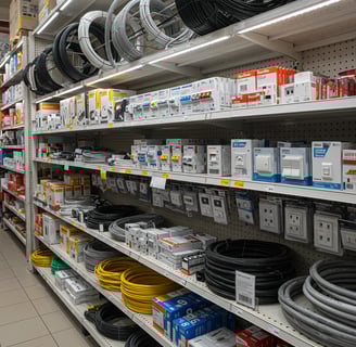 Fios, cabos, disjuntores, caixas de luz e todos os materiais elétricos para sua obra ou reforma.